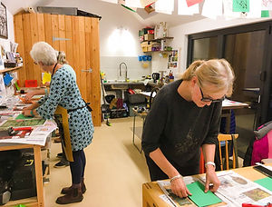 I offer a range of print workshops at my studio. These include 1 and 2 colour lino printing, drypoint etching using tetra pak and monoprinting with collagraph blocks. The workshops are suitable for all abilities and numbers are limited to allow for more individual tuition.